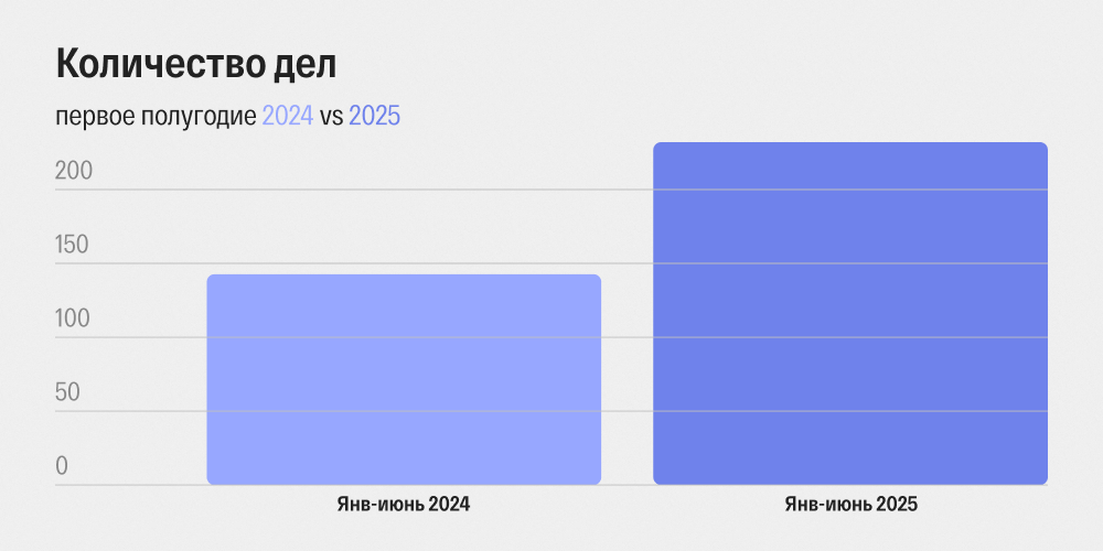 Тренд продолжается: в 2025 году (первые шесть месяцев) таких фигурантов — 83, то есть, 36% от общего числа.